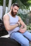 Hardcore, Daddy, Caucasian, Mature, Condom, Big Dick, Hairy, Muscular, Tattoos, Anal, Blowjob, Masturbation