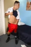 Hot jock stud Andrew Fitch strokes his juicy cock in solo !