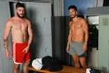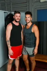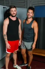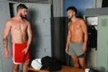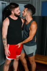 Marco Lorenzo and Kyle Hart have sex in the locker room.
