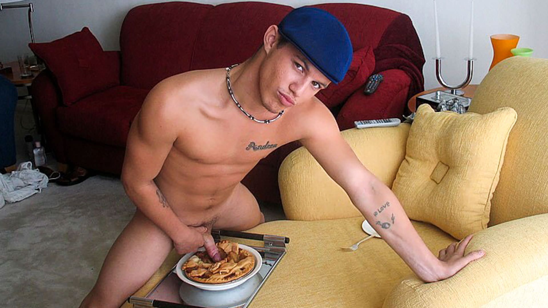Bye, Bye Miss American Pie and hello to Andres. Even through those sunglasses you could see the bad boy look in his eyes. There's no missing that devilish 'I've got something you want' smile either. That smile is there for several good reasons! What's not to like about this smooth, tight bodied little hottie with a creamy white bubble butt and a hard young dick that never goes down.He sure loved being in front of the camera and the lens loved him right back. Even though he's only 18, he's already been having sex for ten years and that sure worked to our advantage.I knew just jacking off while being filmed would be too tame for him and quickly learned he preferred apple flavor to anything vanilla. He works that pie as well as his fist and ends up covering the top with his special homemade frosting. From the fingerfull he takes afterwards, perhaps I was wrong. From the look on his face as he licks his fingers clean, maybe he doesn't mind the taste of vanilla after all. Bon Appetit!