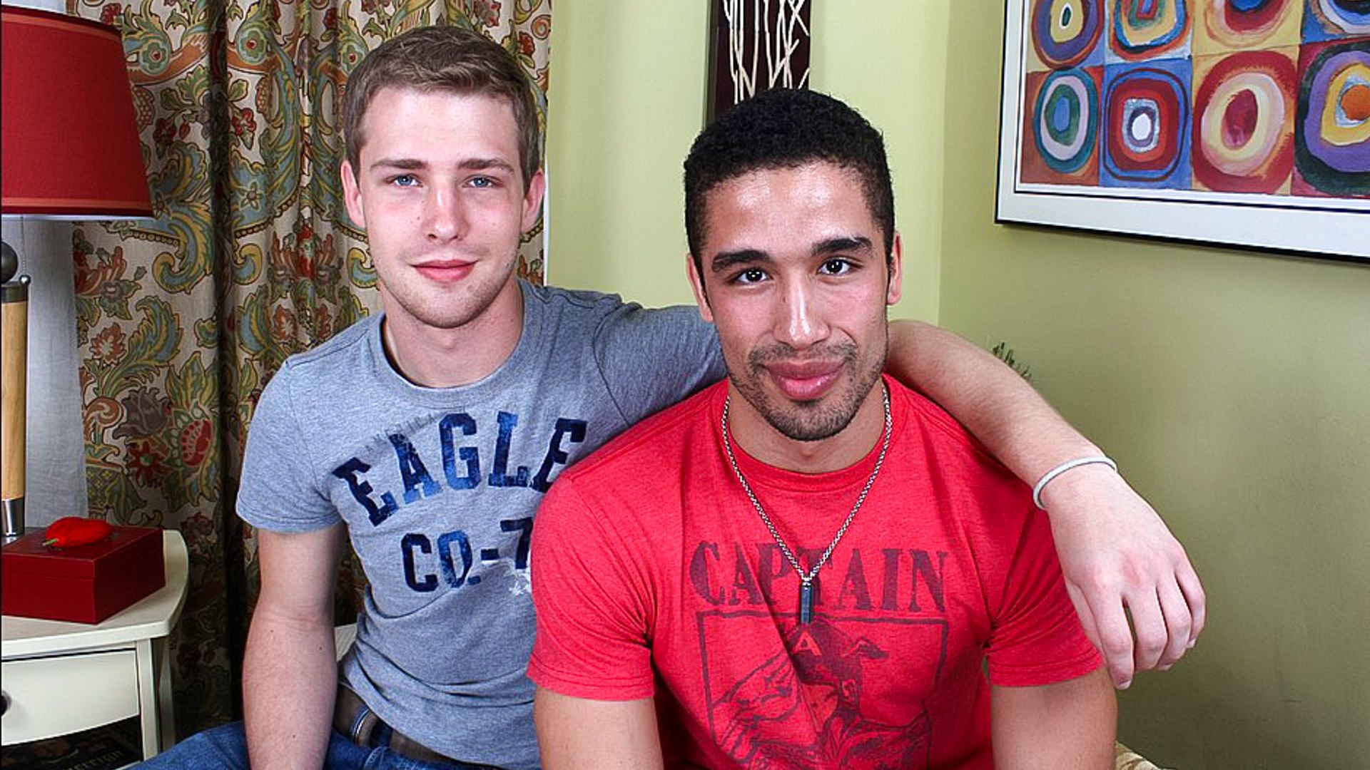 Trey Turner is back in the house and looking better than ever. It's been way too long since we've seen Trey; but it looks like this 22 year old Fort Lauderdale boy has been hitting the gym. Trey's efforts will be greatly appreciated by his costar, newcomer Cole Branson. Cole makes his debut with us this week and this sexy 21 year old from Georgia, complete with that sexy hint of drawl, is packin' plenty. We wondered if these studs could pick a dream car which it would be. 'I'd love a BMW Z4.' beams Trey who would want his navy blue with beige interior. Cole jumps in on that bandwagon and wants one too. Cole's ZX4 would be black. We then asked them where they would want to take these cars to on a road trip. Trey would want to drive out to the California coast; while our Georgia peach would be just fine heading south to the Florida Keys. Key West can be just what you need to get your mind off things...and your dick in other things. With that in mind we should get these two naked.Trey is waiting for a glass of water on the couch and as Cole goes to hand it to him he accidentally spills some on his shorts. How convenient. Trey stands up with his crotch soaked as Cole apologizes and tells him to just take them off so he can throw them in the dryer. As Trey drops his shorts, Cole notices the bulge in his briefs. 'Trey what's this?' he blushes as he grabs his growing cock. They start to make out as the rest of their clothes fall on the floor. They grope at each other's cocks and once Trey realizes just what Cole's packing he gets on his knees and gets to work sucking on that thick country cock. Cole moans as he gets his massive meat and smooth balls worshipped. Trey then stands to give Cole a mouthful as well. Cole slips onto his knees and starts to return the favor as he swallows Trey's cock to the hilt. He bobs his head up and down as he looks up at Trey who is reveling in the sensation. Trey then crawls atop the chaise to show off that hot ass of his. Cole is all over that as he starts to finger that hole he'll soon have around his dick.Cole teases that hole for a bit before sliding that cock home. Trey winces as his ass gives way to the thick dick making its way inside. Cole is fucking that hot ass deep in no time as the sound of ball slapping fills the room. Trey moans and groans as he takes Cole's fat dick doggy style. Trey's own cock is rock hard as he gets railed. Cole then pulls out and lies on the floor to give Trey the chance to squat and ride it. Trey impales himself on that thick cock and starts to bounce up and down on it as he works himself into a lust-filled frenzy. Cole lays back as Trey slowly pulls that thick cock almost completely out before sliding all the way back down on it. Cole strokes Trey's cock as he gets is own cock ridden. Trey is taking his time and loving every inch he's getting shoved up his hot ass. Then they switch things up and it's Cole that's on his back with his legs in the air. Trey suits up and slides his own cock deep into Cole as he starts to take that ass missionary. Trey's thick cock is harder than ever as he fucks that Southern hole. Trey picks up the pace and that does the trick as Cole blows all over himself. Trey is close behind as he too unloads all over one cum drenched Georgia Peach. Mmmm